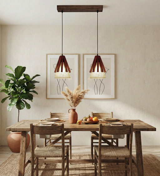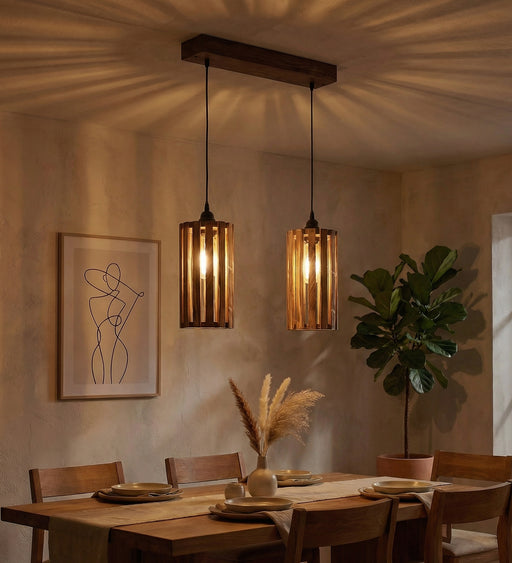 The Elegant Brown 2 Series Hanging Light has a rustic and unique design. It is complemented by 2 LED filament bulbs, for which E27 (screw type) bul...
