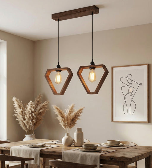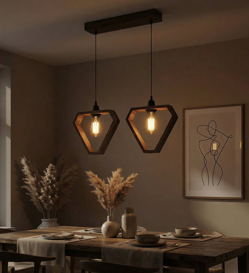The Hexa Brown 2 Series Hanging Light has a rustic and unique design. It is complemented by 2 LED filament bulbs, for which E27 (screw type) bulb h...