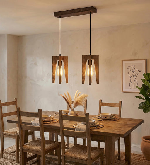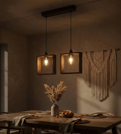 The Quattro Brown 2 Series Hanging Light has a rustic and unique design. It is complemented by 2 LED filament bulbs, for which E27 (screw type) bul...