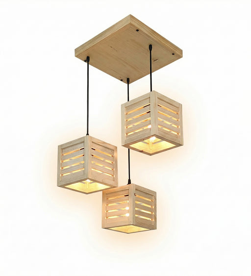 The Trikona Brown Wooden Cluster Hanging Lamp has a contemporary yet rustic design. It is complemented by 3 LED filament bulbs, for which E27 (scre...