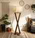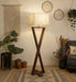 Infinity Wooden Floor Lamp With Brown Base and Beige Fabric Lampshade
