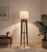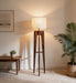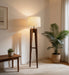Jet Wooden Floor Lamp With Brown Base and Beige Fabric Lampshade