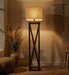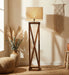 Remy Wooden Floor Lamp with Brown Base and Beige Fabric Lampshade