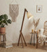 Melman Wooden Floor Lamp with Brown Base and Beige Fabric Lampshade