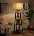 Charlotte Wooden Floor Lamp with Brown Base and Jute Fabric Lampshade