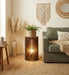 The Ventus Sidekick Wooden Floor Lamp has modern and distinctive styling. The design features handcrafted wooden fins, which resemble a turbine. It is a versatile floor lamp that also doubles as a small side table. It has a provision for a single E27 (screw type) LED bulb.