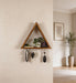 Add a touch of artistry and function to your home with the NOAH Wooden Wall Organiser with Key Holders. Featuring a triangular shaped design, this unique piece offers an elegant way to display small decorative items while providing convenient key holders at the bottom, blending style and practicality effortlessly.