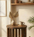 Introduce a touch of elegance to your home with the Ezra Solid Wood End Table. Designed with wooden planks on the top and bottom and framed by sturdy structures, this end table offers both style and functionality. The three sides, accented with wooden strips, lend a refined and sophisticated look, making it a perfect addition to your living room or bedroom.