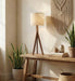 The Triune Wooden Table Lamp has a striking and dynamic design. It features an attractive cylindrical lampshade. The lamp base is handcrafted with solid pine wood and beautifully finished to enhance the natural wood grain and colour.