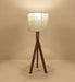 Triune Brown Wooden Table Lamp with White Printed Lampshade